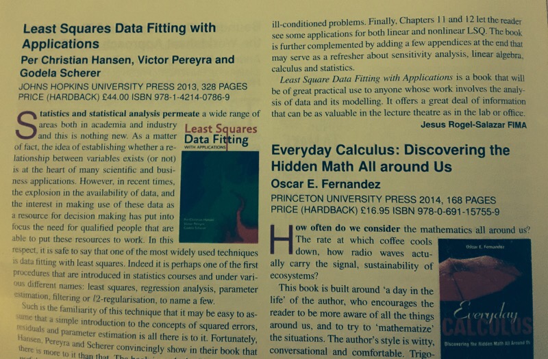 It is that time again: geeky reading! Not only that by “Mathematics Today” has finally published the book review I wrote! Tags:GeekViewpoint