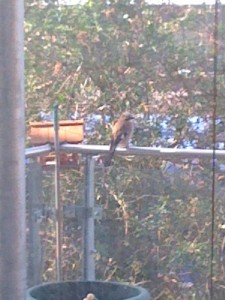 This bird has been coming to the balcony almost every morning. It is nice to have it around, but I am wondering what sort of bird it is.